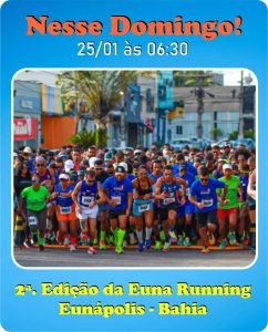 A cidade de Eunápolis já se prepara para receber a Euna Running 2026, marcada para o dia 25 de janeiro de 2026, neste domingo. A largada acontece às 6h30 da manhã, reunindo atletas profissionais, amadores e amantes da corrida em um evento que vai muito além da competição.
