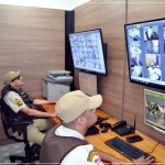 Atento a tudo que acontece na cidade, os agentes fazem o acompanhamento do vídeo-monitoramento de ruas, praças, comércio e prédio públicos.
