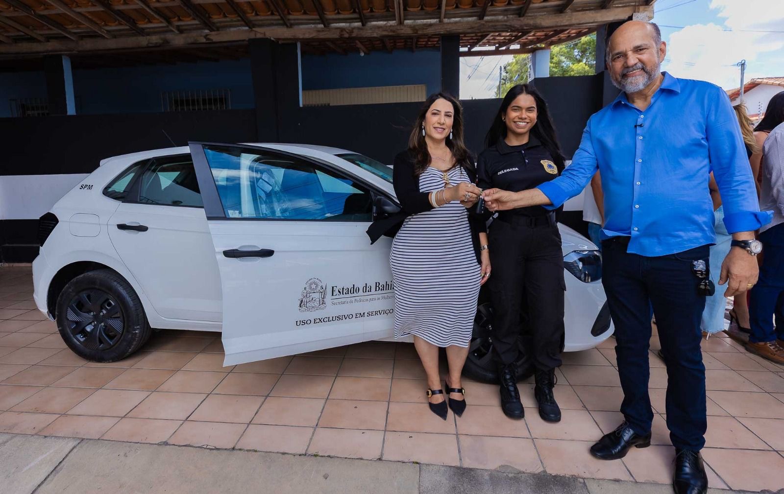 A entrega contou com a presença do prefeito Robério Oliveira, da secretária municipal de Assistência Social, Maria Menezes, do delegado e coordenador regional da 23ª Coorpin, Moabe Macedo, da delegada da NEAM, Amanda Rezende, do delegado da Polícia Civil Manoel Vieira, da presidente do Conselho Municipal dos Direitos da Mulher, Damaris Vieira, além de vereadores e representantes da rede de proteção.