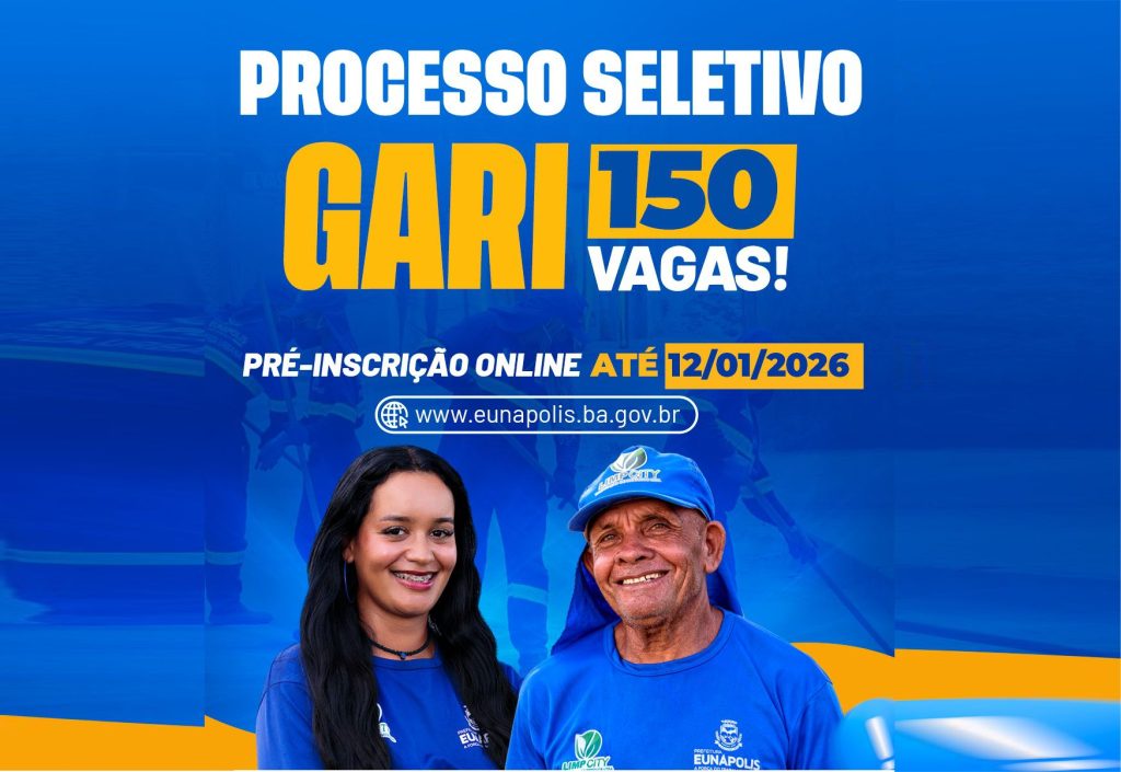 A Prefeitura de Eunápolis, por meio da Secretaria Municipal de Gestão, publicou o Edital nº 001/2026, que institui Processo Seletivo Simplificado para a contratação temporária de profissionais para o cargo de Gari, pelo Regime Especial de Direito Administrativo (REDA).