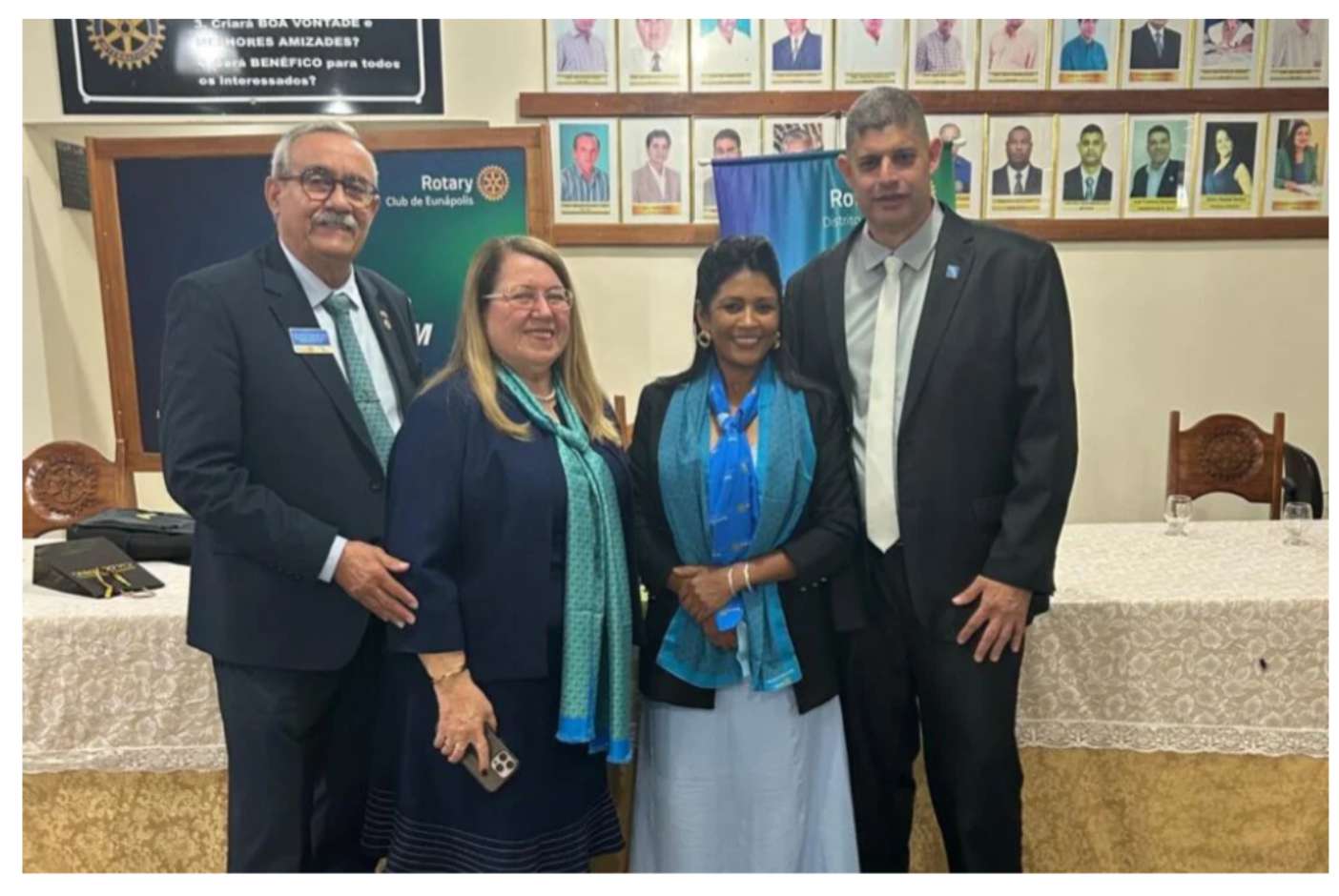 Na noite desta semana, o Rotary Club de Eunápolis, presidido por José Hélio, teve a honra de receber a visita oficial da Governadora Distrital Yara Cruz e de seu esposo, o Vice-Governador Luiz. O encontro foi marcado por momentos de grande companheirismo, troca de ideias e fortalecimento dos ideais rotários.